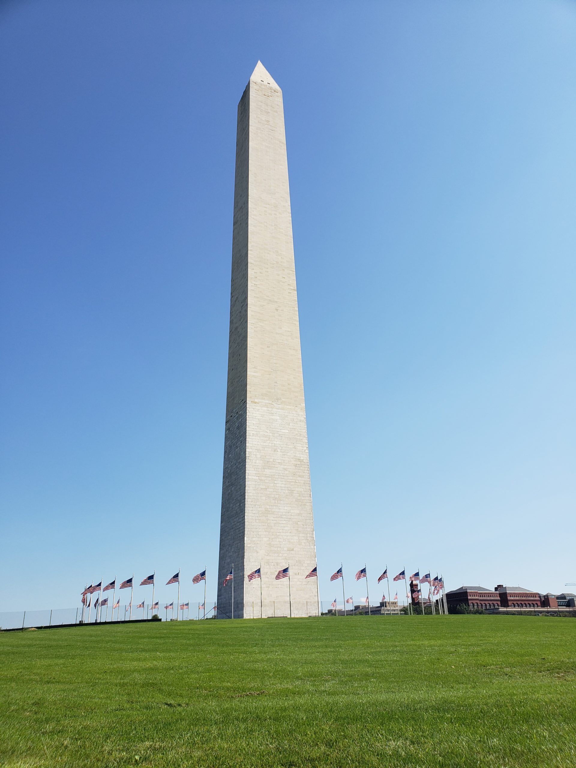 El famoso obelisco esta rodeado de 50 banderas que representan los estados de EUA, fue inaugurado en 1885 hasta que llegó la Torre Eiffel fue el edificio mas alto del mundo.