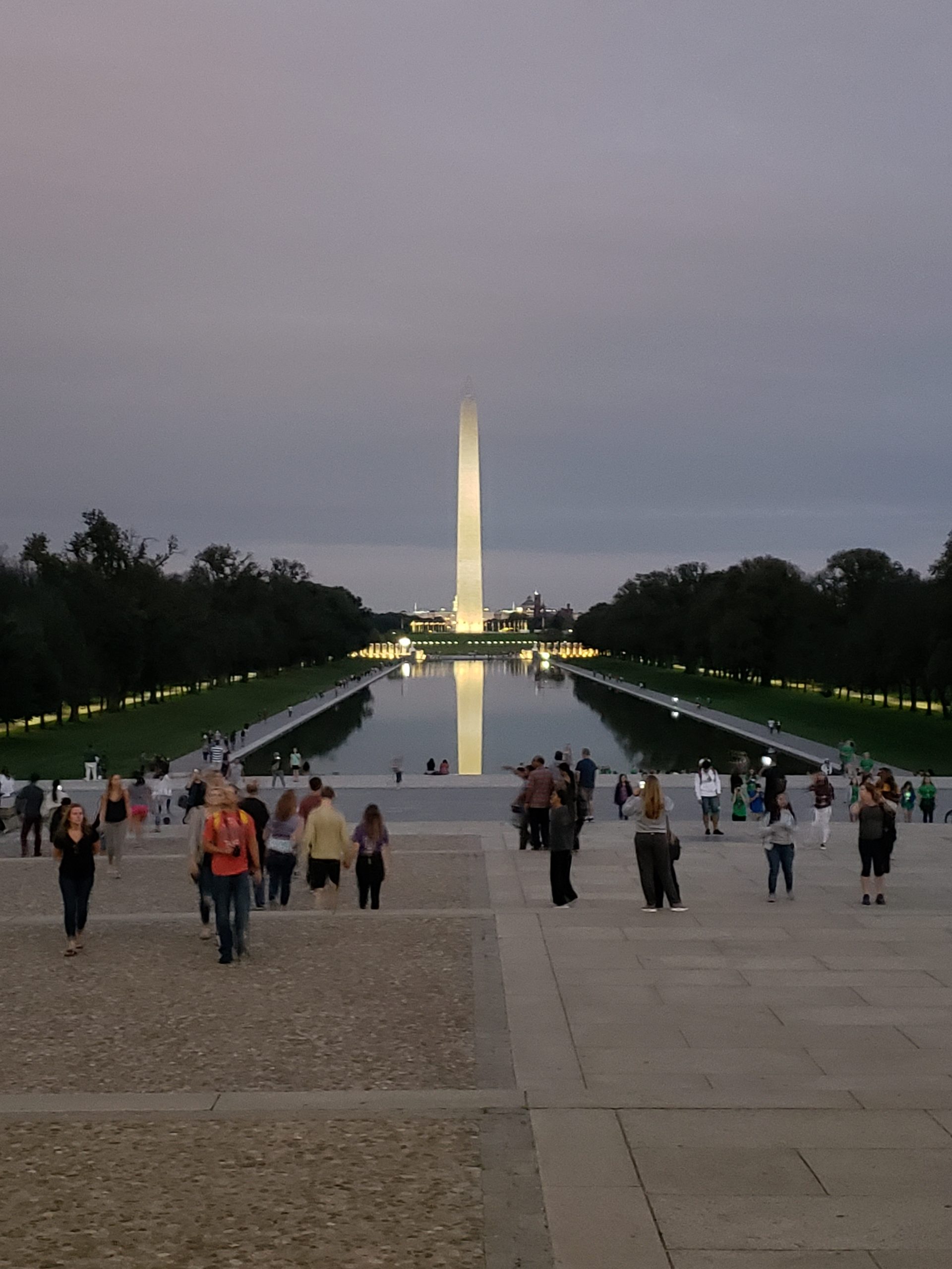 Justo en frente del obelisco podrás ver la “Reflecting Pool” que conecta al Lincoln Memorial del otro lado.