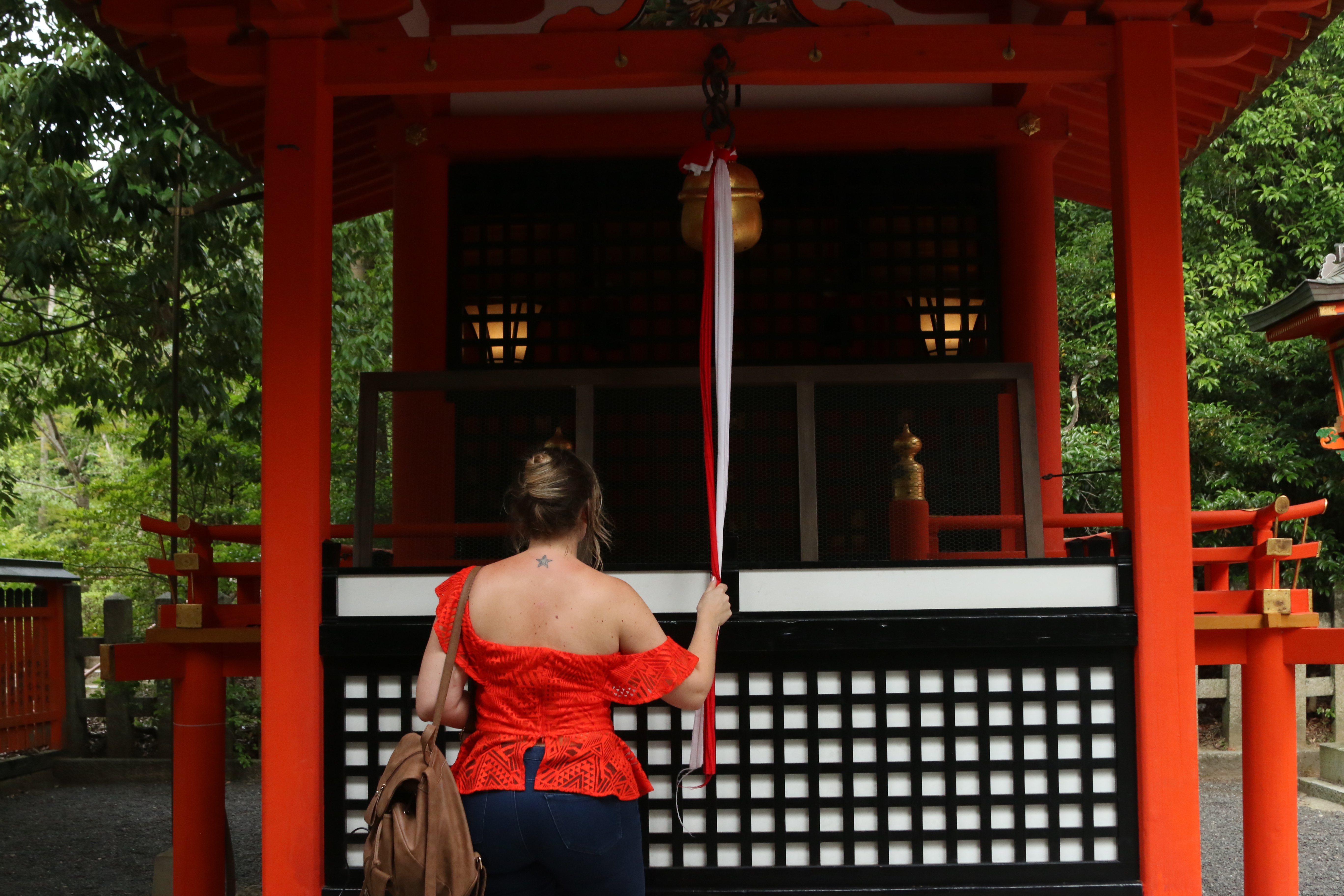 Puedes entrar al santuario por la puerta Romon que es la principal y está justo después del gran torii.